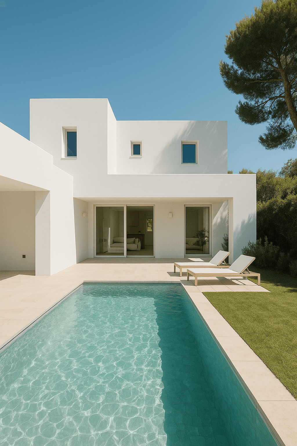 Die SERRA AG verantwortete das Projekt von der ersten Entwurfsskizze bis zur schlüsselfertigen Übergabe. Im Fokus stand die harmonische Integration in die umgebende Landschaft und ein konsequent minimalistisches Design mit mediterranem Einfluss.
